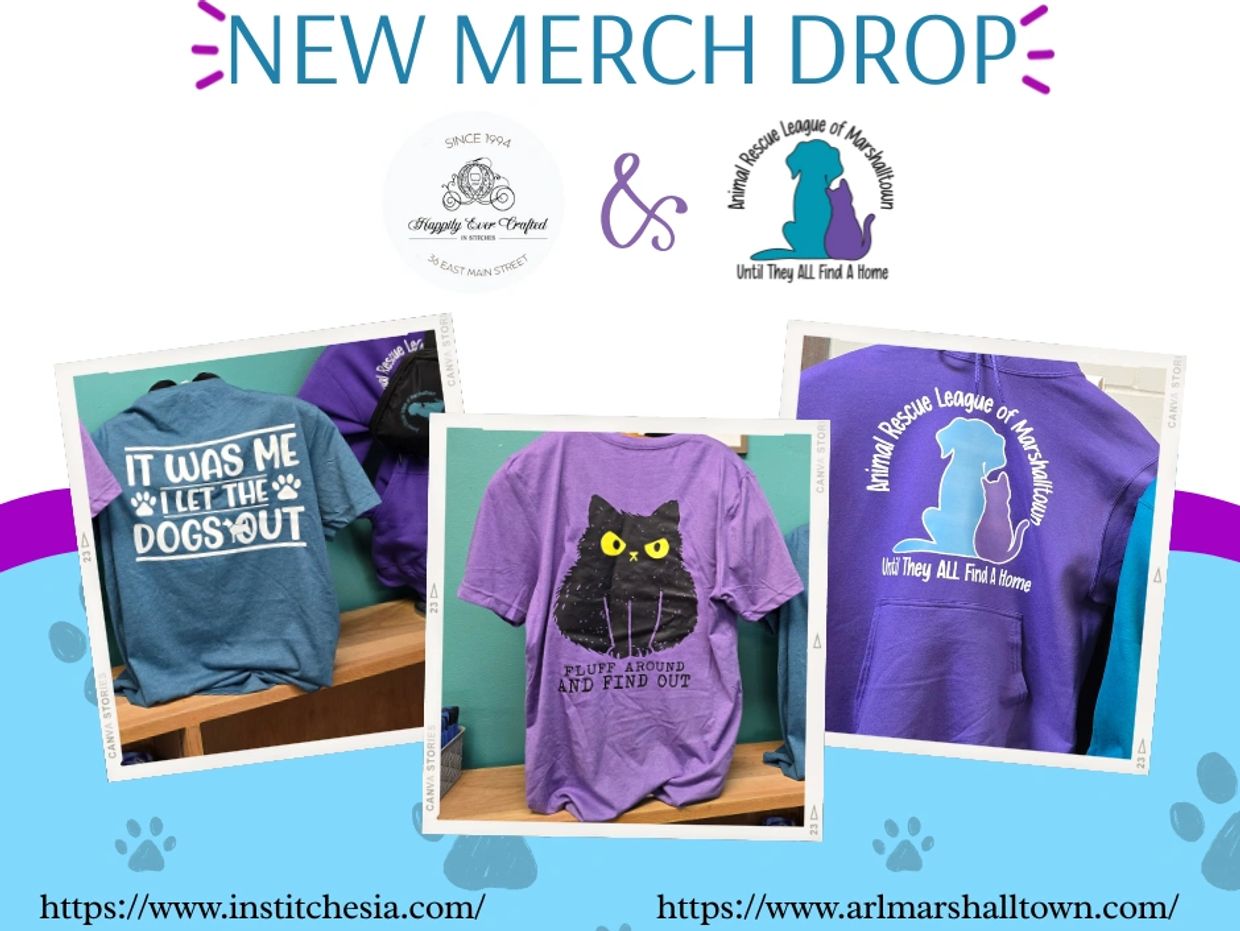 When you purchase one of these stylish, up-to-date designs, ALL proceeds go directly to supporting the life-saving work here at the ARL of Marshalltown. Every shirt purchased helps fund our mission to rescue and rehome animals in need!